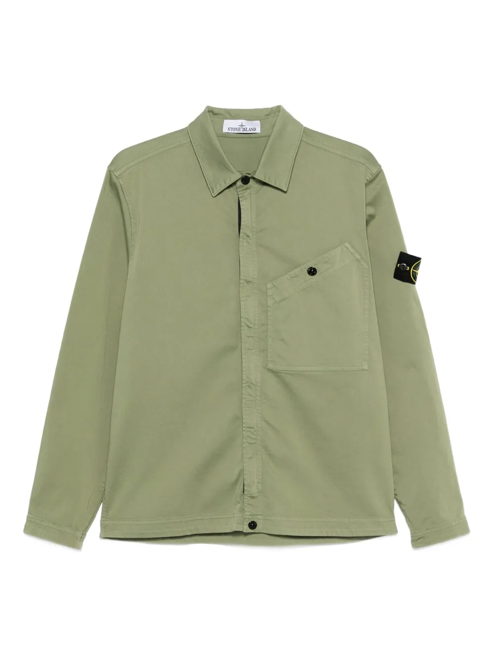 Stone Island Compass-badge shirt | Green | sage green | pointed collar | front button fastening | long sleeves | chest patch pocket | Compass badge detail | Organic Cotton/Spandex/Elastane | Shirts | Clothing | Men
